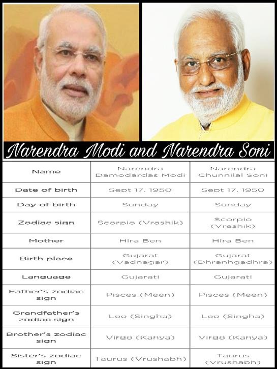 PM Narendra Modi and businessman Narendra Soni have uncanny resemblances starting with their date of birth (September 17, 1950) and name (Narendra). There is neither any family relationship between the two nor have they ever met but they share several similarities including same birthday (Sunday), zodiac sign (Scorpio), mother’s name (Hira), father’s zodiac sign (Pisces), grandfather’s zodiac sign (Leo), brother’s zodiac sign (Virgo), sister’s zodiac sign (Taurus) and many more.